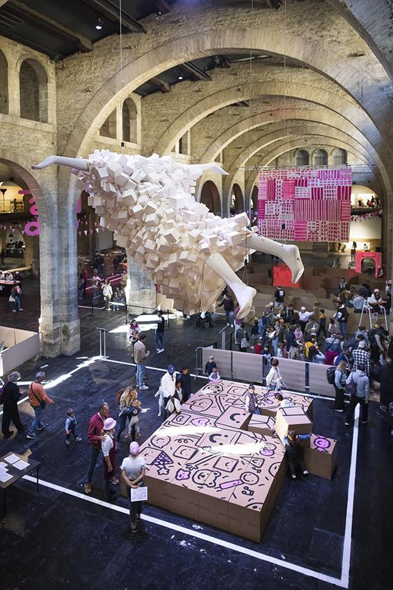 Puzzle et labyrinthe géant • Piscine à doudous • Ça cartonne, jeux de constructions à grande échelle • Grotte à dessins par Greta Humeau • Wall Drawings • Croque les œuvres de la collection