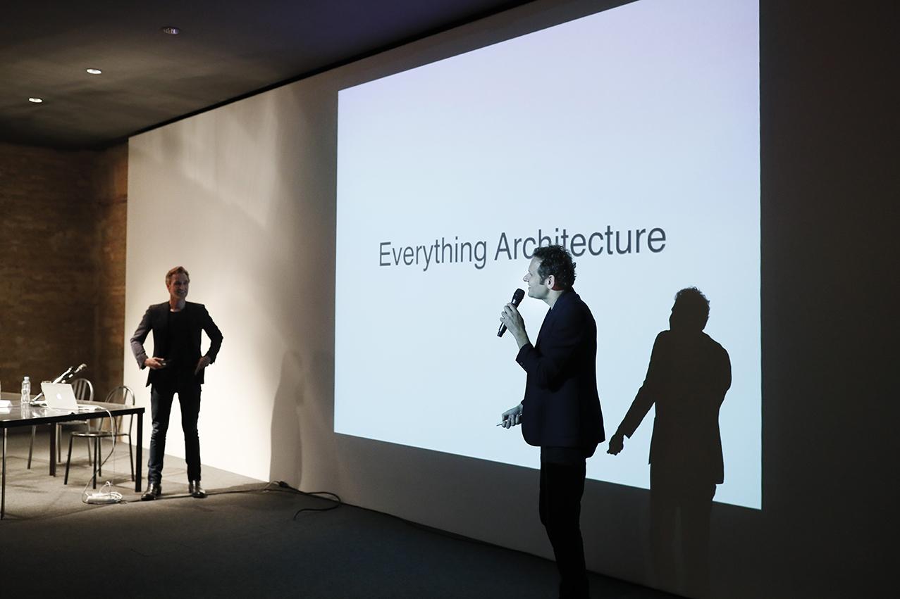 everything architecture est fondée sur l’idée que la valeur ajoutée architecture est infinitésimale face à la masse confuse des constructions qui constituent notre environnement. Elle se joue selon Kersten Geers et David Van Severen avec des décisions précises tout au long du processus de projet, toujours avec une conscience critique ; essentiellement dans sa relation au monde et à la culture.