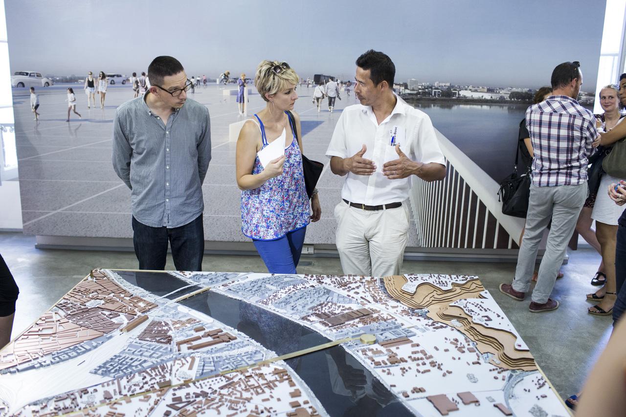 L’exposition met en scène les éléments clés du concept et revient sur la genèse du projet d’OMA, à travers des images grand format, des maquettes, des diagrammes, des diaporamas. Elle invite à découvrir ce nouveau pont qui répond à la complexité avec élégance et simplicité.