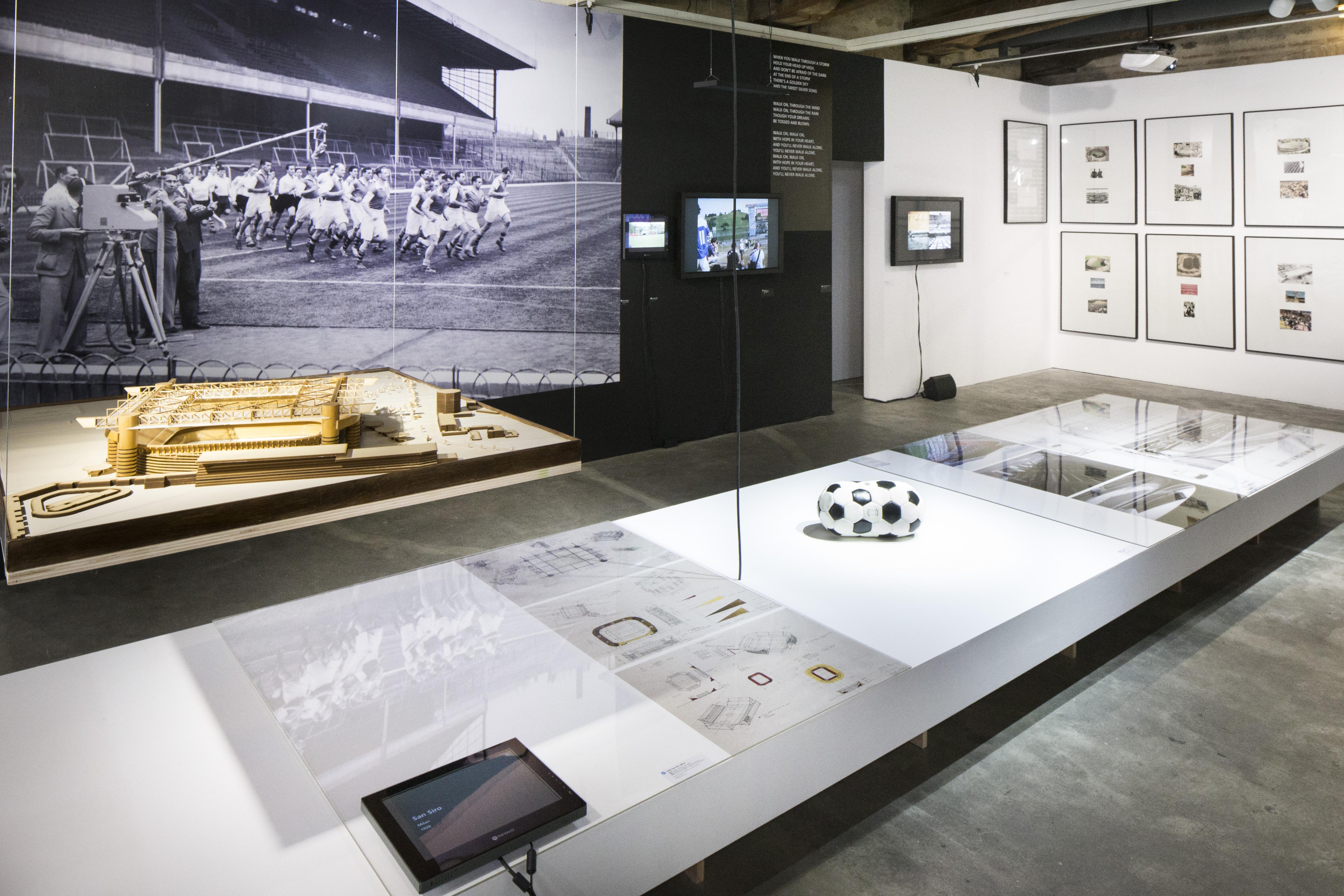 The exhibition tells the story of the stadium using carefully selected material from the fields of architecture, art, and documentary.